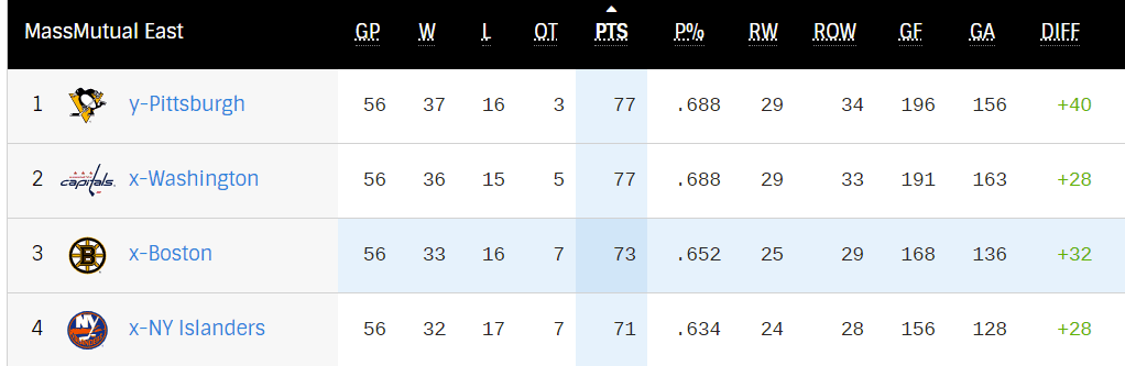 The top three were close again, while the Islanders struggled. New York has trended down in the second half of the season. However, its special teams have been really good recently.