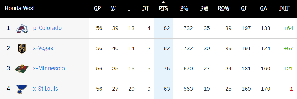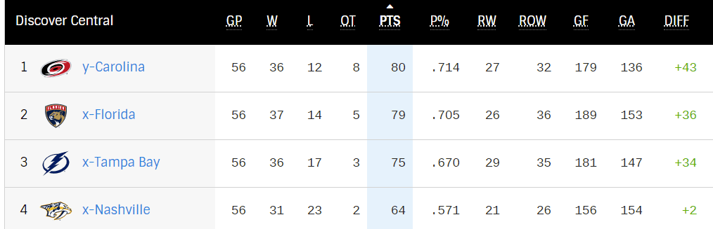 The top three have swapped positions all season, but the Hurricanes got the #1 seed. But suddenly the Predators have been quite good in the second half.