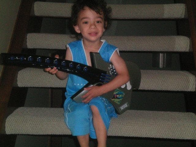 Like the old man, Sam loves cars. Not only can he point out a Mustang or a Corvette to you, he can do it by year and engine option. Sam wants to be a guitar player, just like his big brother. Of course, Sam loves hockey in general and the Oilers in particular — something to do with the puck Sam Gagner gave him, I suspect.