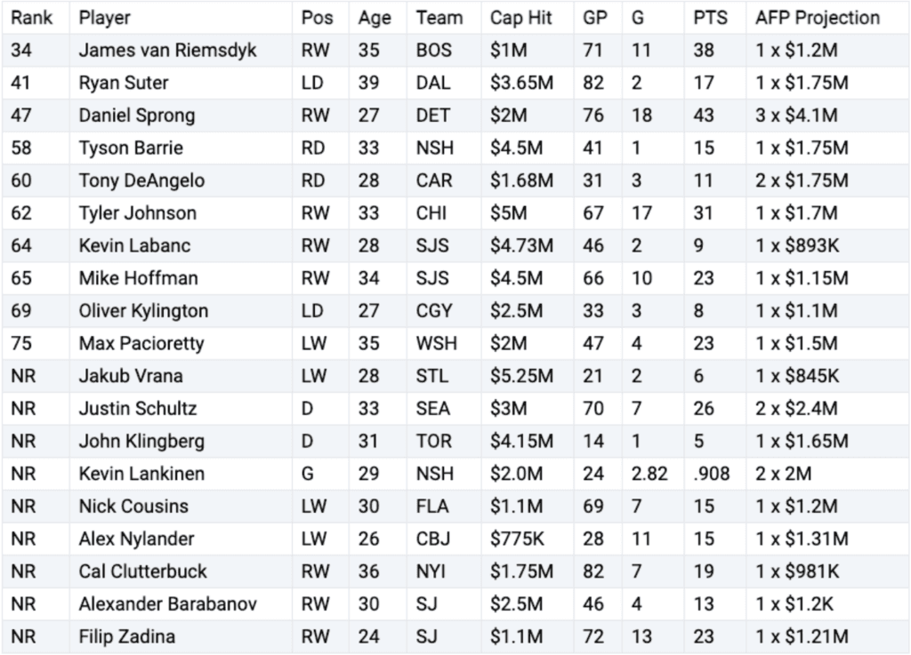Tyler Johnson is another player on here who is coming off a pretty strong season with the rebuilding Chicago Blackhawks. He scored at a 20-goal pace and has been on a handful of deep playoff runs with the Tampa Bay Lightning, where he won two Stanley Cups. I feel like there should be a few contending teams interested in bringing him in as a veteran depth option.