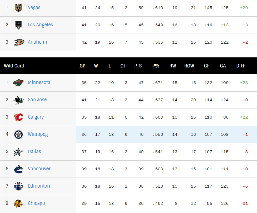 Los Angeles, San Jose and Winnipeg also lost in regulation last night. So the turtle derby for playoff positions in the Pacific and the wildcard race is still wide open.