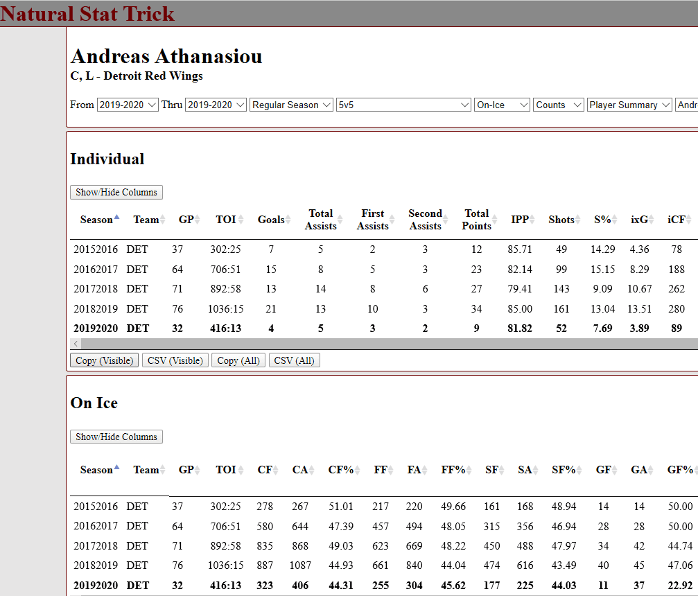 His production at 5×5 this season has been remarkable. These stats are among forwards with at least 400 minutes at 5×5.