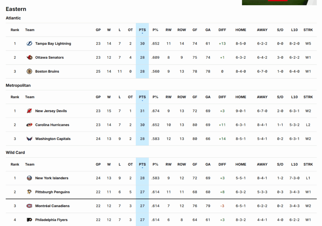 It’s jarring to see New Jersey at the top of the division with how their season fractured, the plan of getting Quinn Hughes being no plan at all, and now in franchise flux without a GM. The Devils, along with the Islanders and Capitals, were not able to keep their positions.