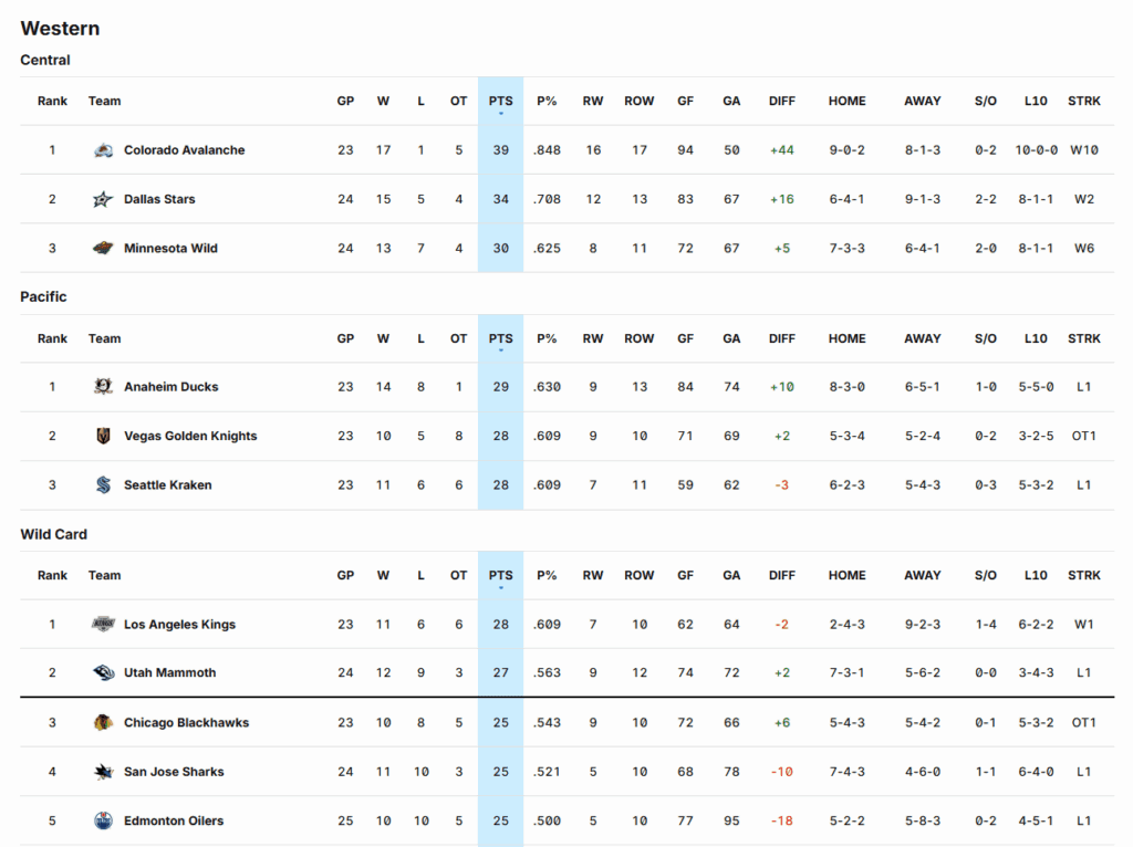 In the Western Conference, the changes aren’t dramatic from what the standings were on Nov. 27, 2025.