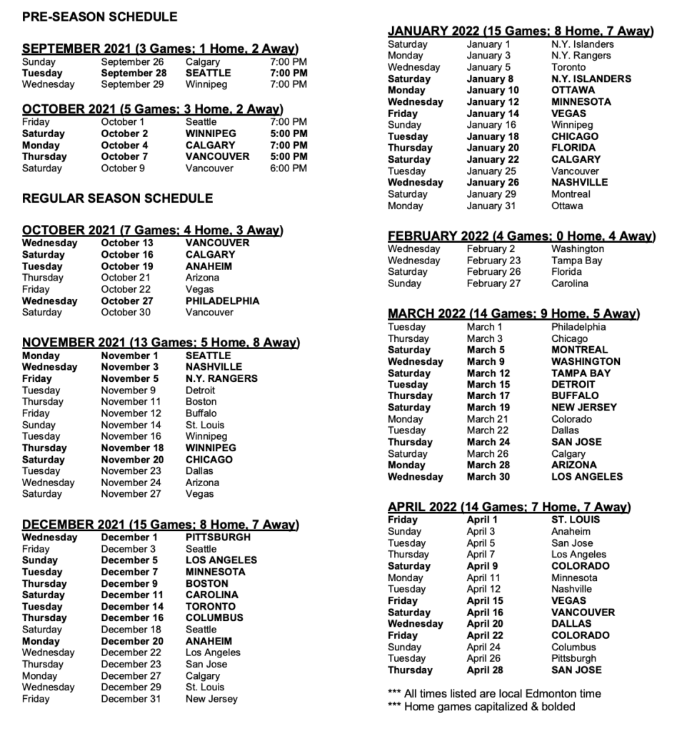 The 2021-22 Oilers schedule is out