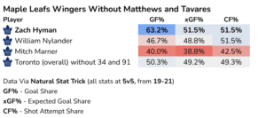 Hyman’s numbers without Toronto’s two top centers have been superior to both William Nylander and Mitch Marner’s in the past two seasons. I believe that he’s more than just a simple complementary player. These results are a pretty encouraging sign that he can be effective with and without flanking McDavid or Draisaitl, and that there’s every chance he can assist in creating a strong 2nd line with RNH.