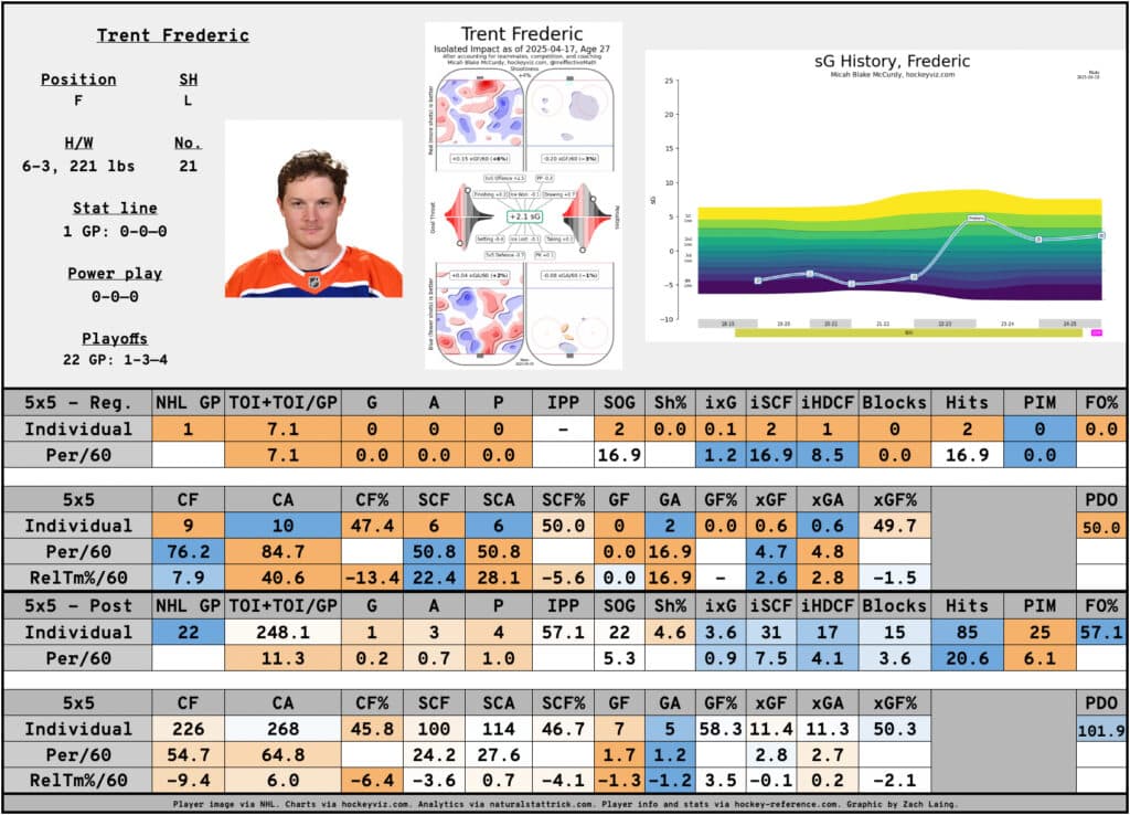 It’s hard to get an exact read as to how Trent Frederic fits into this Edmonton Oilers team.