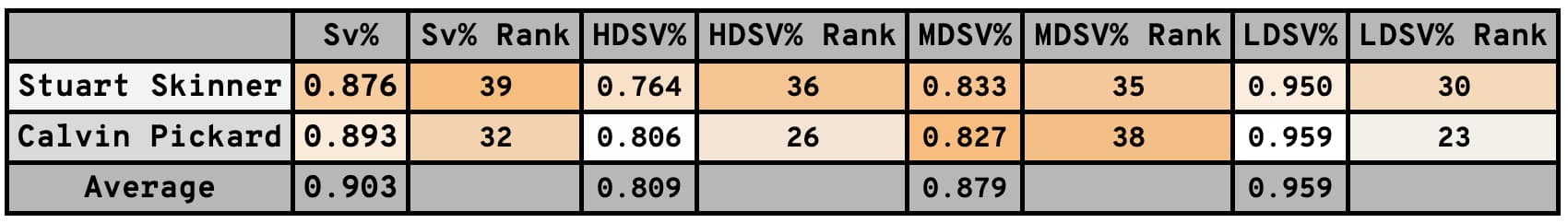 Stuart Skinner, simply put, hasn’t been good enough this season, but Calvin Pickard hasn’t been able to offer much reprieve, either. Among 42 goaltenders who have played as many minutes as Pickard has, who has played in eight games to Skinner’s 14, their save percentages rank among the lowest in the league: