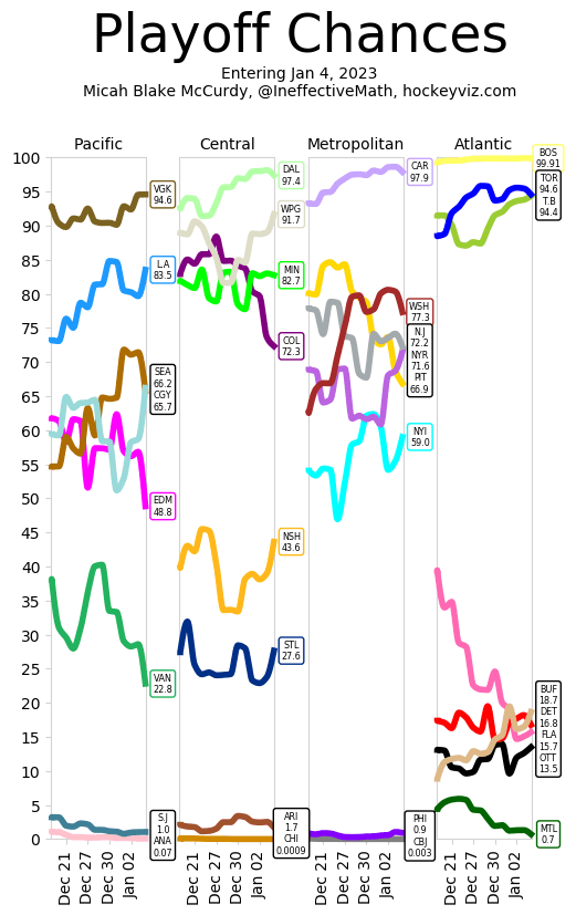 And according to hockeyviz.com, the Edmonton Oilers have a greater than 50 percent chance of missing the playoffs.