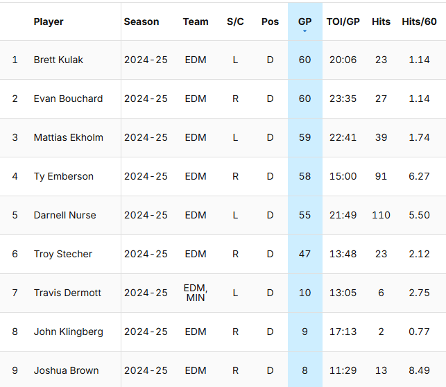 Also, please don’t try and suggest the Oilers possess the puck more so that means they hit less. It is a theory that has been proven inaccurate over and over.