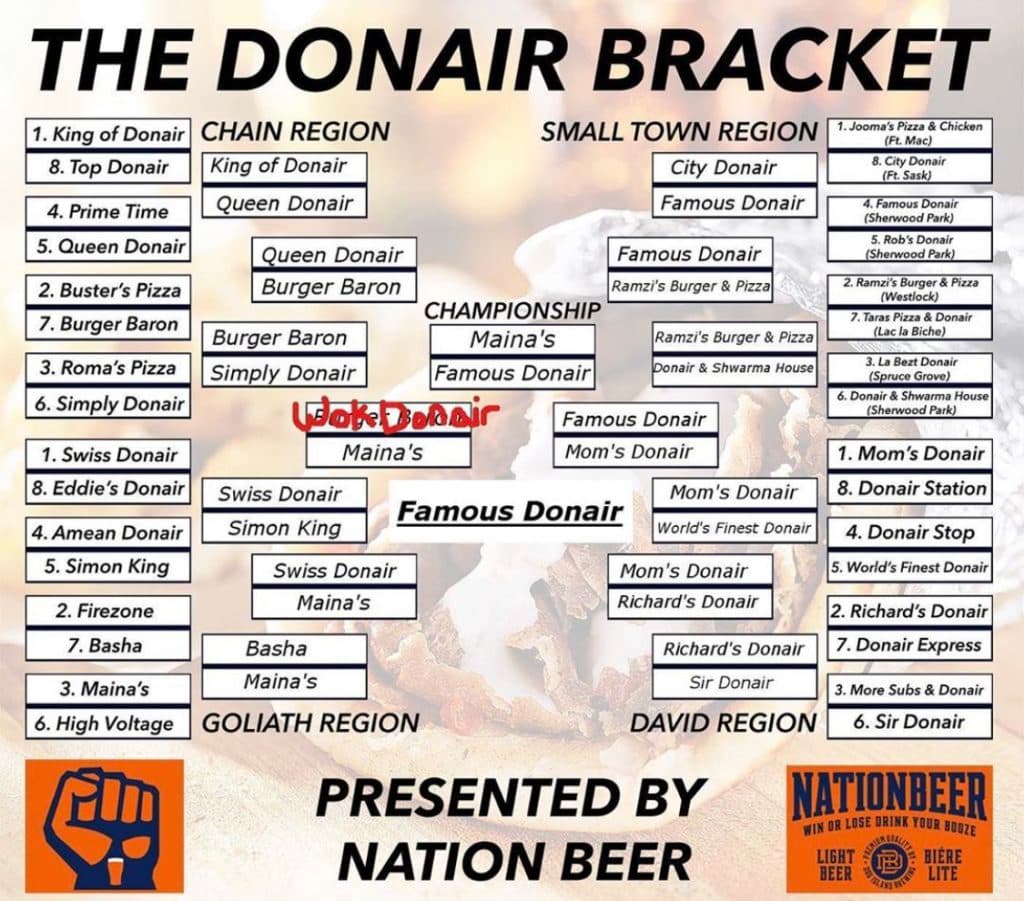 Famous Donair, our eventual champion, got their start in the Nation’s Small Town Region as a four seed going up against Rob’s Donair, another Sherwood Park shop.