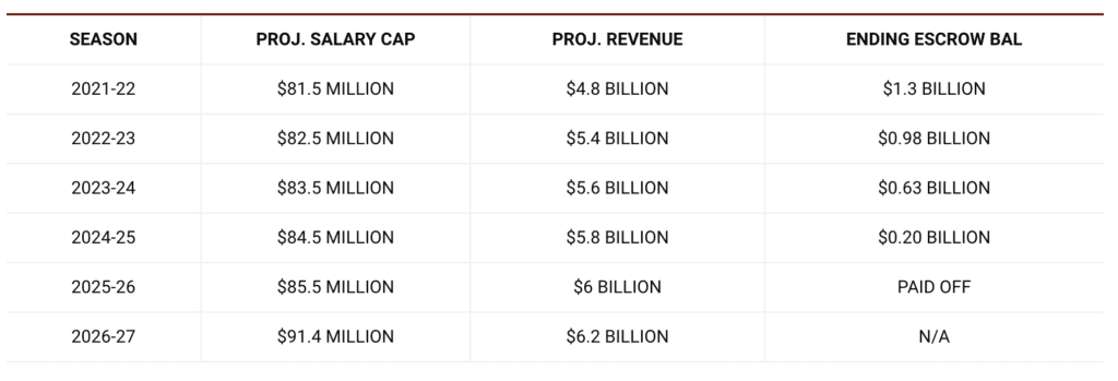 Due to the 2019-20 season getting cut short, the 2020 playoff being played in a bubble without any fans, and the majority of the shortened 2021 season being played either without fans or at partial capacity, the players reportedly owe the owners roughly $1 billion to compensate for revenue shortfall.