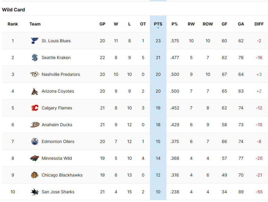 Dallas, Colorado and Winnipeg are in a good position in the central, while Vegas, Los Angeles and Vancouver are eight+ points ahead of every other Pacific division team, and the odds are in their favour they will make the playoffs. That leaves two wildcard spots, and right now it is more of a turtle race than a sprint.