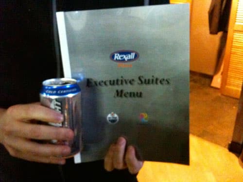 Rubbertrout’s a hot-shot from Calgary who loves the Oil. So he scored some tickets to ye olde corporate box, and yesterday set sail on the QEII for colder climes.