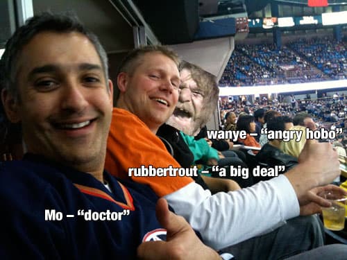 The conversation also flowed. Mo claimed to be some kind of doctor — and he kept insisting that he could get me super cheap cosmetic surgeries if I "don’t ask too many questions". His doctoring is in the field of breathing, and he spent a great deal of the evening constantly checking our airways. He also pointed out that OilersNation.com is blocked at the University Hospital. This made Wanye very excited.
