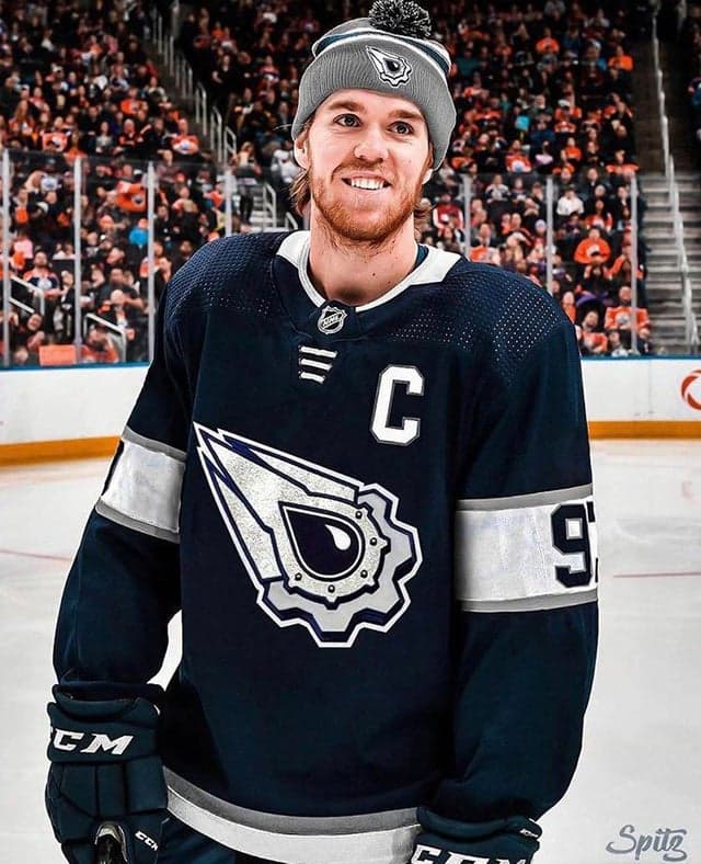 Unfortunately, I really doubt the Oilers will ever bring this jersey (or anything from the dark blue era, like the Rigger logo) back to life, but it’s fun to imagine regardless. This jersey came out when the Oilers were owned by the Edmonton Investors Group. It was designed by comic book creator Todd McFarlane, one of the minority owners at the time. Now that the organization is under different ownership, it’s hard to imagine them going back to anything from that era.