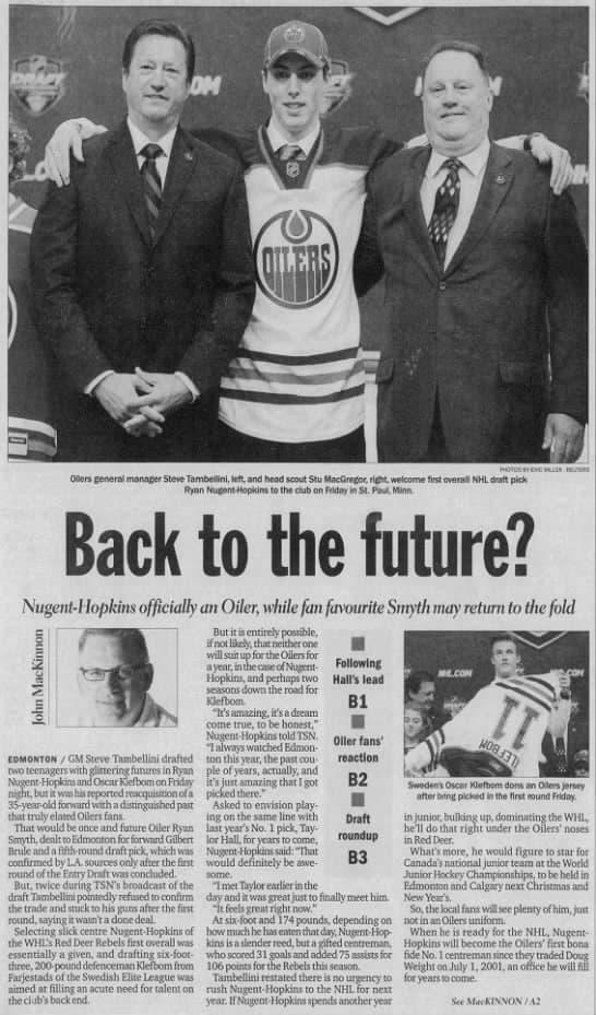 This week in 2011 (June 24), the Edmonton Oilers had a fantastic first-round drafting Ryan Nugent-Hopkins and Oscar Klefbom in the first round.