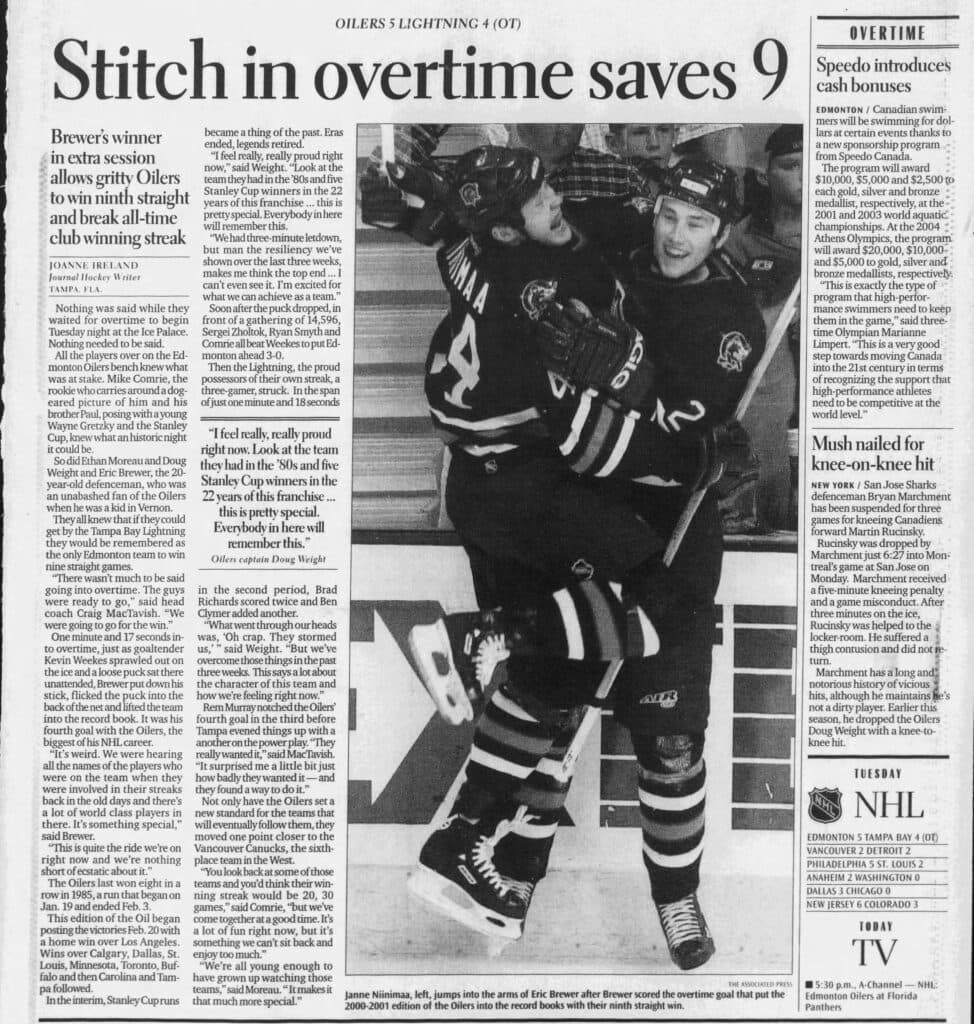 Throwback to 2001: Oilers set franchise record with ninth consecutive victory