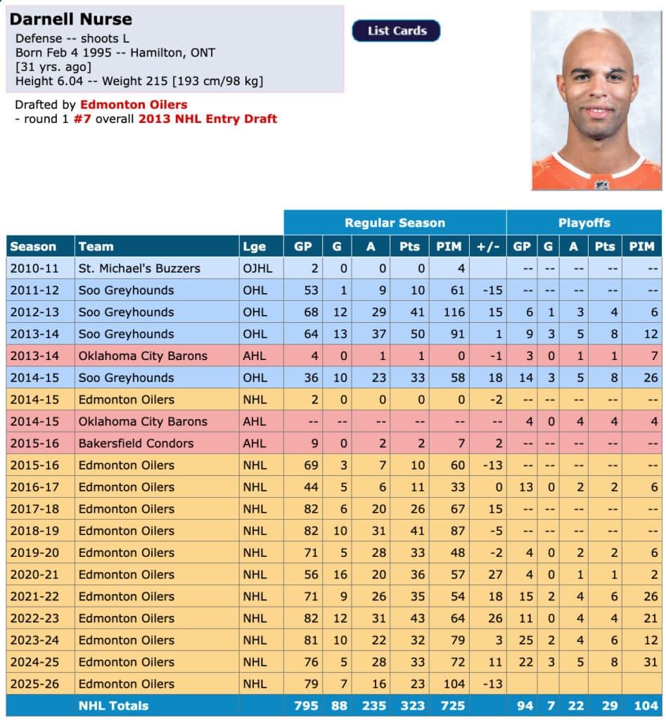 It’s been 13 years since Nurse was drafted seventh overall by the Oilers. If you remember back to that draft, everything got moved around once the Florida Panthers took Aleksander Barkov 2nd overall, instead of the assumed Seth Jones. Edmonton was expected to take either Elias Lindholm or Sean Monahan, but both went ahead of them at seven. Instead, they landed with Nurse.