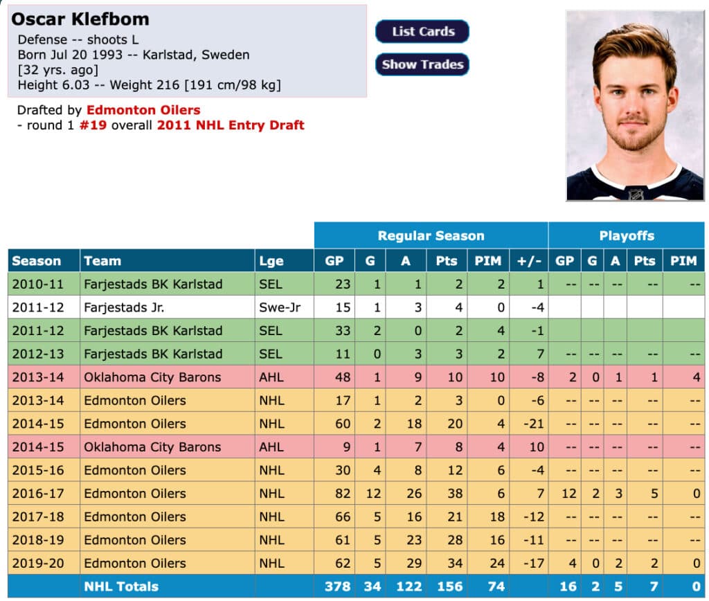 The story of Klefbom’s career was injuries and what could’ve been if he didn’t have a chronic shoulder injury. When healthy, Klefbom was a minute-munching top four defenceman that could chip in on the scoresheet.