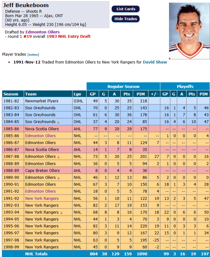 Beukeboom’s performance made him hard to keep, as he was a later piece added to complete the Mark Messier trade in November 1991.