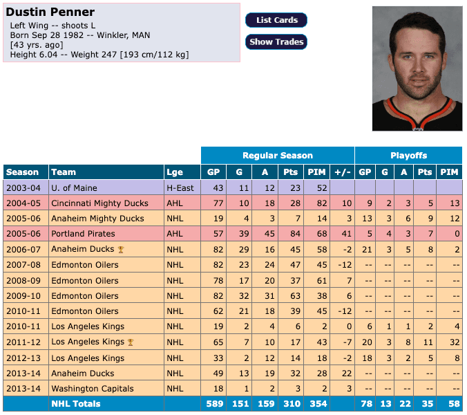 Penner later returned to the Ducks and finished his career with the Washington Capitals in 2014.
