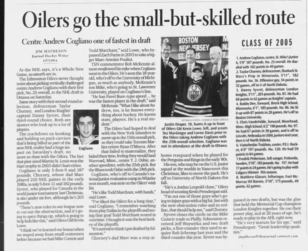 Back in the summer of 2009, the city was sent into a frenzy as reports circulated that the Oilers were on the verge of acquiring star winger Dany Heatley from the Ottawa Senators. Then-Oilers GM Steve Tambellini was offering the Ottawa Senators a package of players that included Cogliano, Ladislav Smid, and Dustin Penner for Heatley.