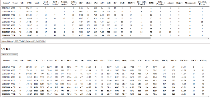 He was on for more goals against, but his CF%, FF%, SF%, xG%, SCF% and HDCS% were all the highest or second highest of his career.