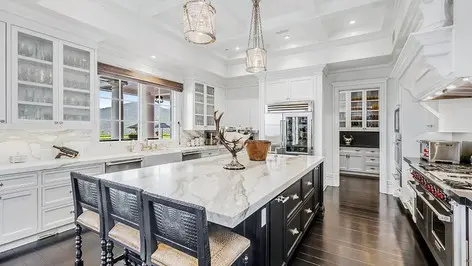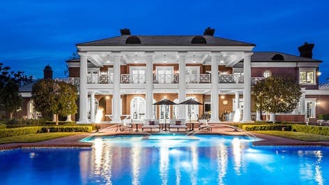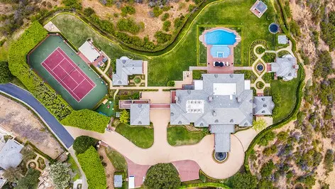 The 6.5-acre lot sits atop the Sherwood Country Club featuring a 360-degree view of the Santa Monica Mountains, as well as Lake Sherwood. The six-bedroom, 13,000 sq. ft. colonial revival home also features a tennis court and a swimming pool on the property.