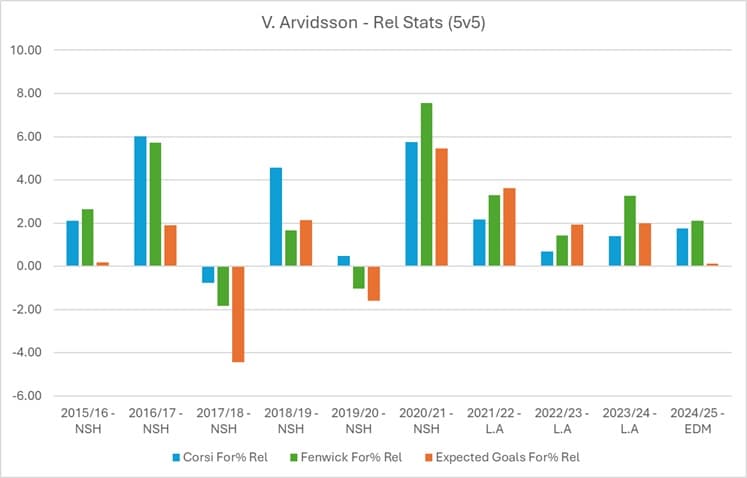 This isn’t to say Arvidsson is a perfect player — he’s not. But there’s going to be gaps that the Oilers will need to address if/when they move him out. He’s a reliable play driver who can play with and without a team’s best players. He can perform well against top-level competition. And he does have a history of relatively good production. These are things that the Oilers are likely cognizant of and will need to factor in when identifying and/or acquiring their replacement(s).