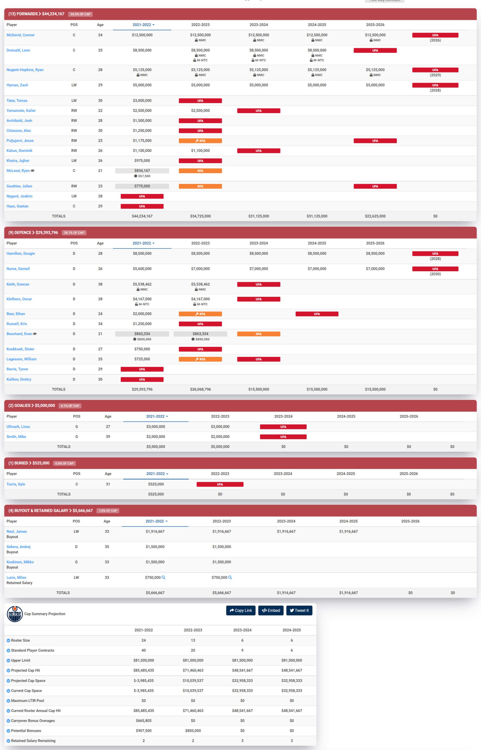 *a quick note: PuckPedia doesn’t allow players to be moved to LTIR, but the Oilers would be cap compliant based on this roster*