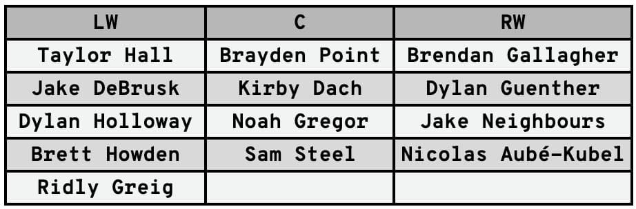 The forward group gets thin in a hurry for Team Alberta. The top line is anchored by Brayden Point, which is a huge boon, and would be flanked by Taylor Hall and Brendan Gallagher. This trio are one, two and three in terms of points among active Alberta players, and while, in theory, William Nylander could be included here, he’s only ever represented Sweden in international tournaments, so he’s off the list.