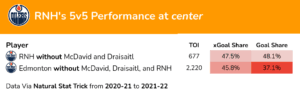 Here’s a look at RNH’s results at center (aka, away from McDavid and Draisaitl):