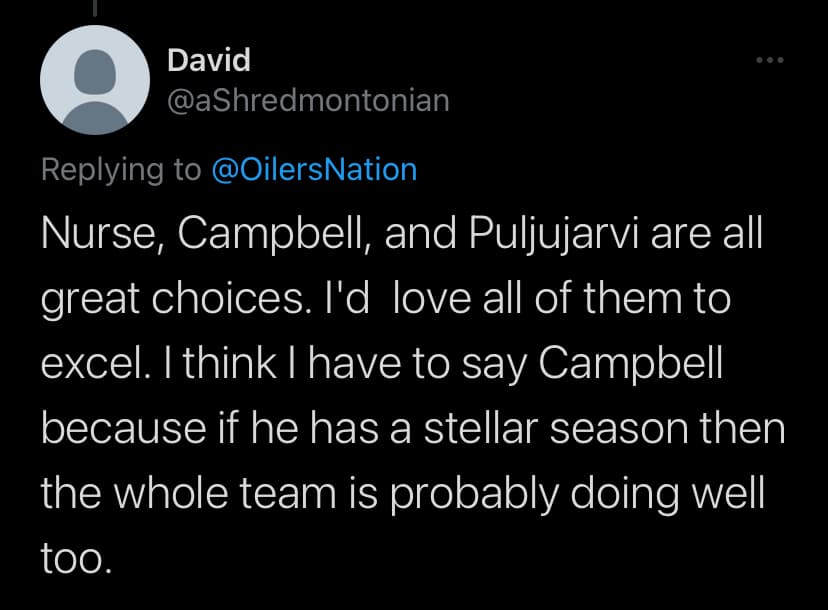 The three notable players that everyone wants to see a career year out of next season. Jack Campbell, Darnell Nurse, and Jesse Puljujarvi. Maybe, just maybe Jay Woodcroft and his coaching staff can unlock a different level for all of them!