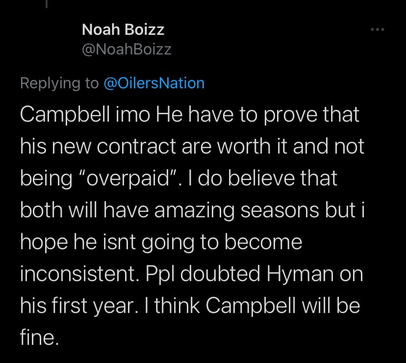Some folk just want him to be more defensive, the Oilers already have the offense! Can Darnell surprise the hockey world and win the Norris? a monster year from him is all we want!