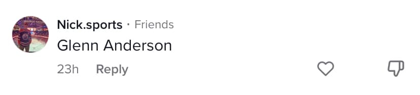 Shoutout to the kids on TikTok who know who Glenn Anderson is. From what I’ve gathered after reading the social comments, Anderson seems to be the clear winner next to a current-day Edmonton Oiler! After taking a few more looks, Anderson might have a Top 3 caterpillar in NHL history. I really hope I used that term correctly.