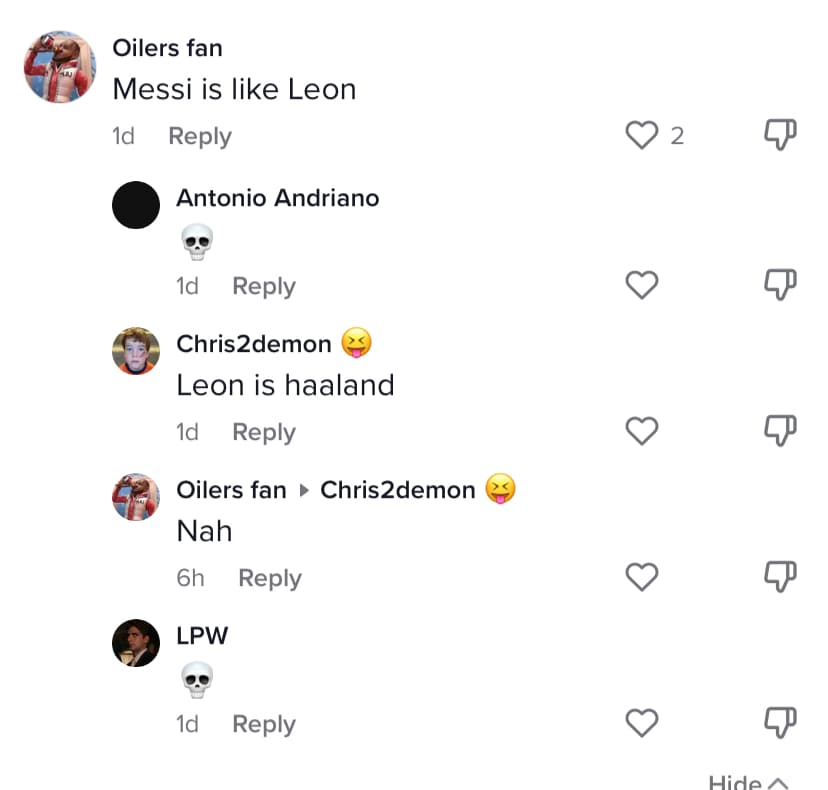 Slight comment war over on TikTok. They didn’t necessarily answer the question but I can see Leon being more of an Erling Haaland. Maybe that’s a question for another day?