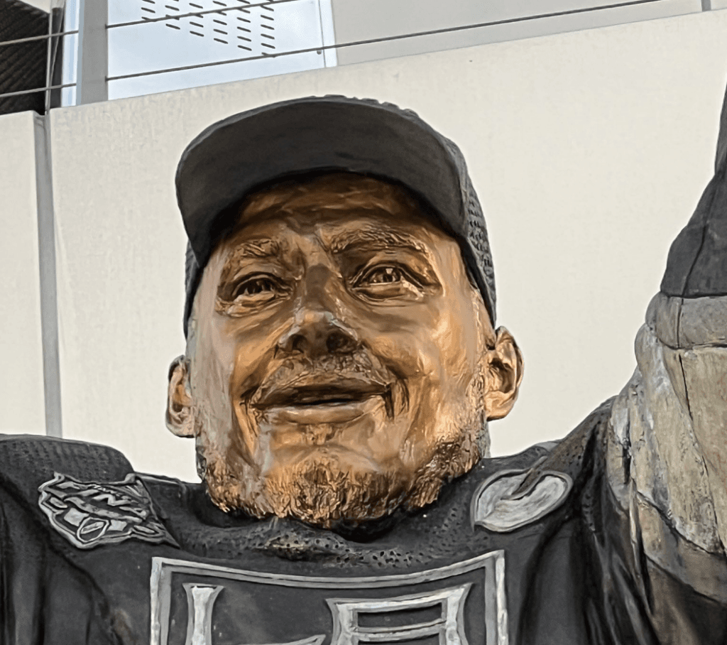 I know there aren’t many reasons to like the Los Angeles Kings, but I can think of one. I’m not sure who the Kings contracted to build the Dustin Brown statue they have outside their arena, but that person is a hero for the massacre job they pulled on Brown’s face. I mean, when you look at the picture above that I took last April, does this look like Dustin Brown to you?