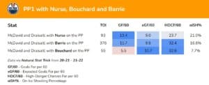 In regards to his potential increased TOI on the power-play, here’s a look at how Edmonton’s top PP unit performs with Nurse, Barrie and Bouchard: