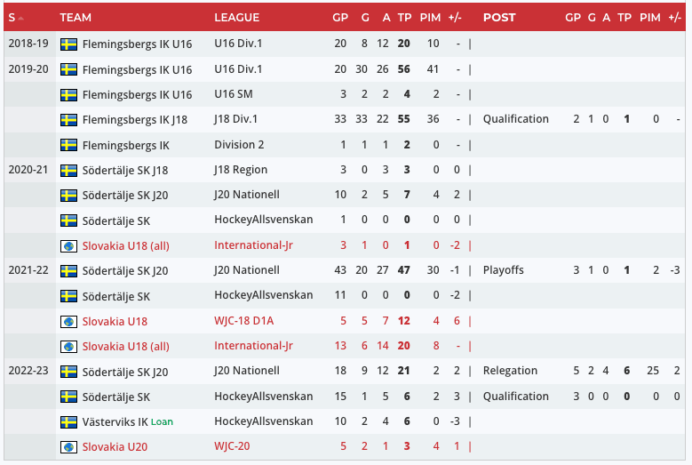Čiernik had a great first full season in the Swedish Junior League, scoring 20 goals and adding 47 points in 43 games. In fact, this gave him an opportunity to play in the HockeyAllsvenskan, the second division of Swedish hockey. He played 11 games and finished the season with a -2.
