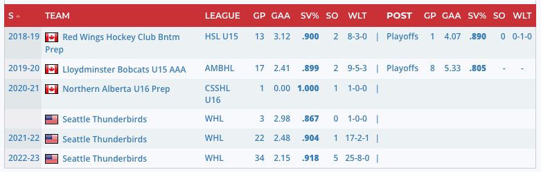 The 18-year-old was the 1B goaltender for the Seattle Thunderbirds, who made it all the way to the finals, after a pretty successful season in the Western Hockey League.