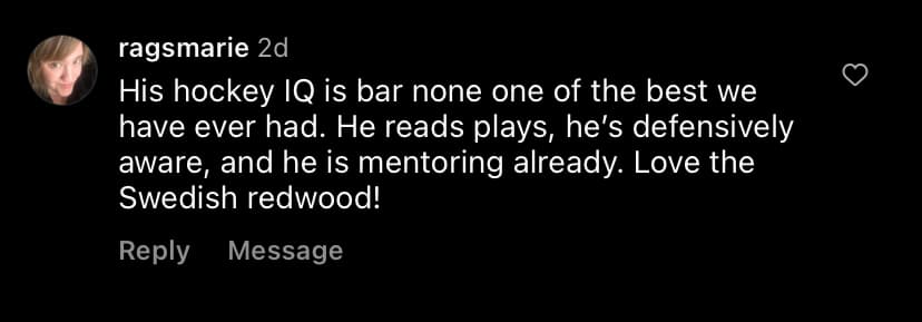 Ragsmarie noticed his hockey IQ on full display already. I’ve loved his defensive awareness as well as the placement of the puck. He knows how to move it. You can just tell how much experience Mattias Ekholm has at this level with the way he defends, moves the puck, and communicates well.