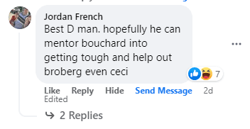 Not sure if it says anything about the Oilers when your newly acquired d-man is already being touted as the best defenseman on the team. Lots are hopeful that he will be the mentor Evan Bouchard needs since the departure of Duncan Keith. I like the idea of Ekholm being a partner, not only just for Bouchard but Broberg as well. It’s always good to remember our defenseman are still young. Too good for the AHL, good enough for the NHL but need to raise their game in order to make an impact every night and a man like Ekholm can shed wisdom on how to do that I believe!