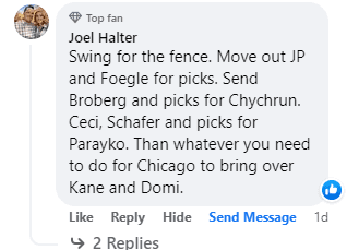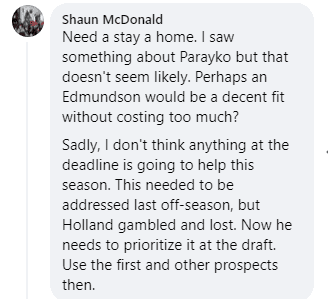 Lots of trade activity from Joel on Facebook! Not sure if the Oilers would be willing to part ways with Broberg. Parayko I’ve been told to stay away from due to injury history, he’s on a long-term deal and simply isn’t the player we think he is. Maybe the 2018 version of Colton Parayko but not the 2023 version. Chychurn on the other hand, yes, please.